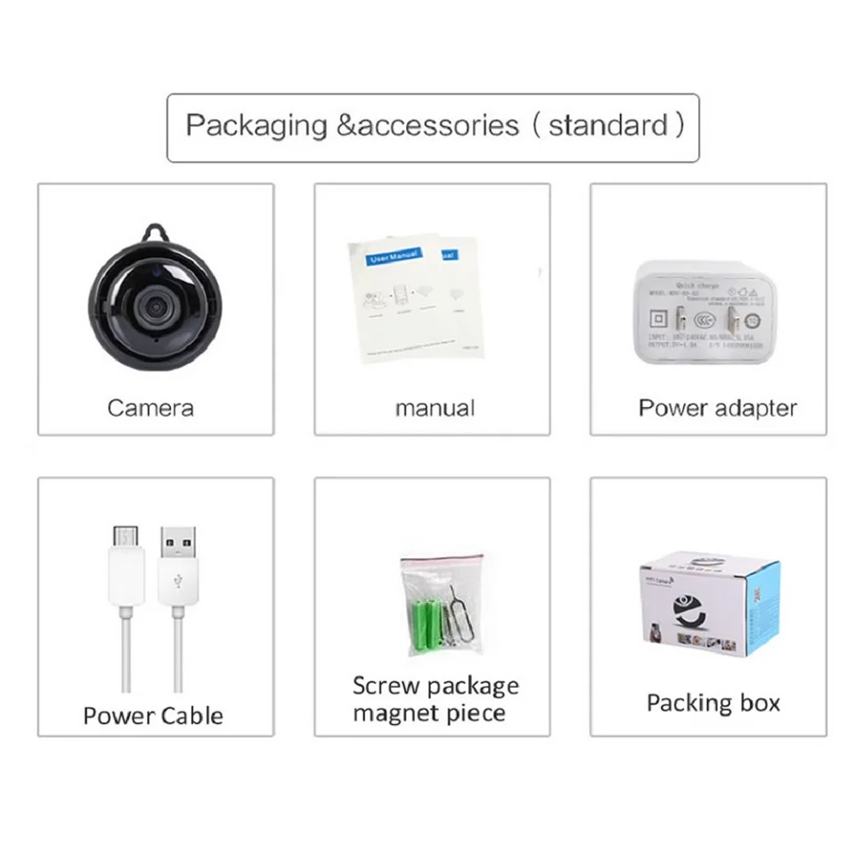 1 * Камера (поставляется в оригинальной коробке)1 * Адаптер питания (ЕС, США, Австралия, Великобритания)1 * кабель питания1 * винтовая посылка, магнит