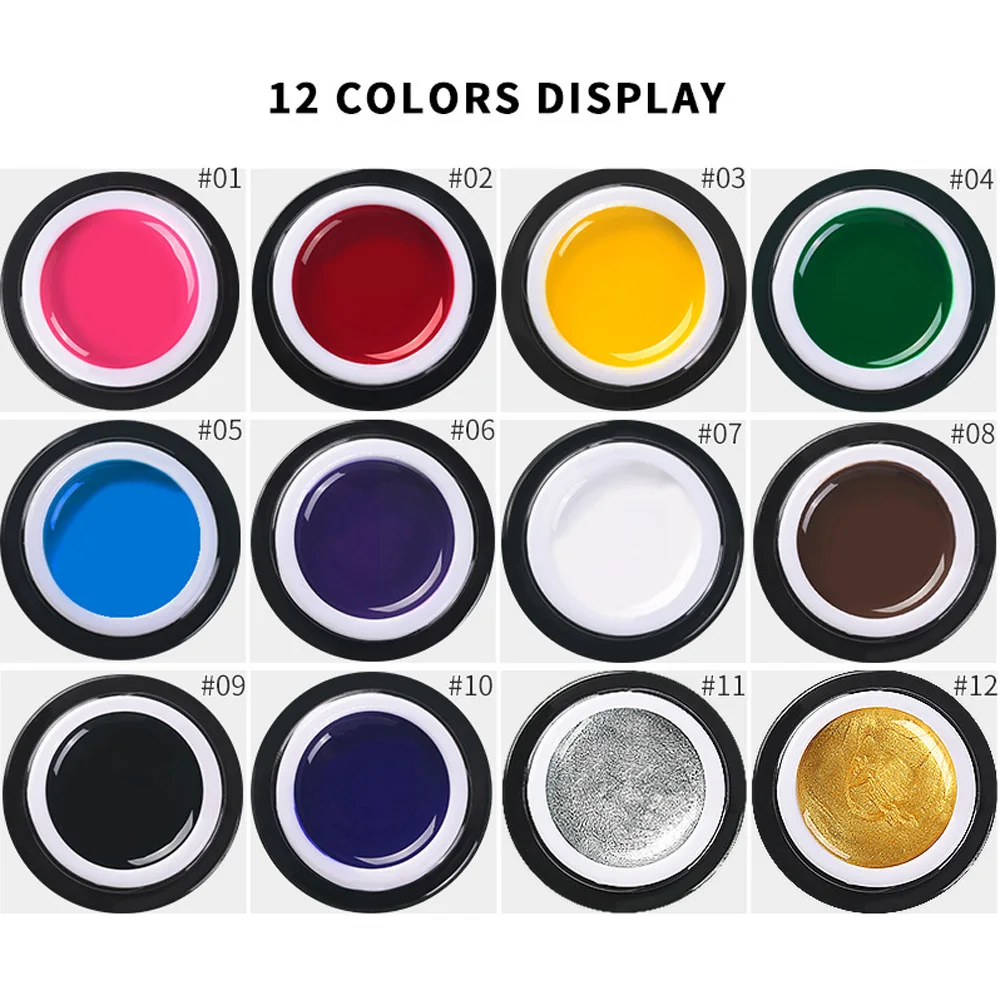 5 г/банка 12 видов цветов Гель-лак для рисования ногтей Гель-лак для ногтей замачиваемый УФ светодиодный дизайн ногтей для маникюра Лак для рисования Гель VI-62