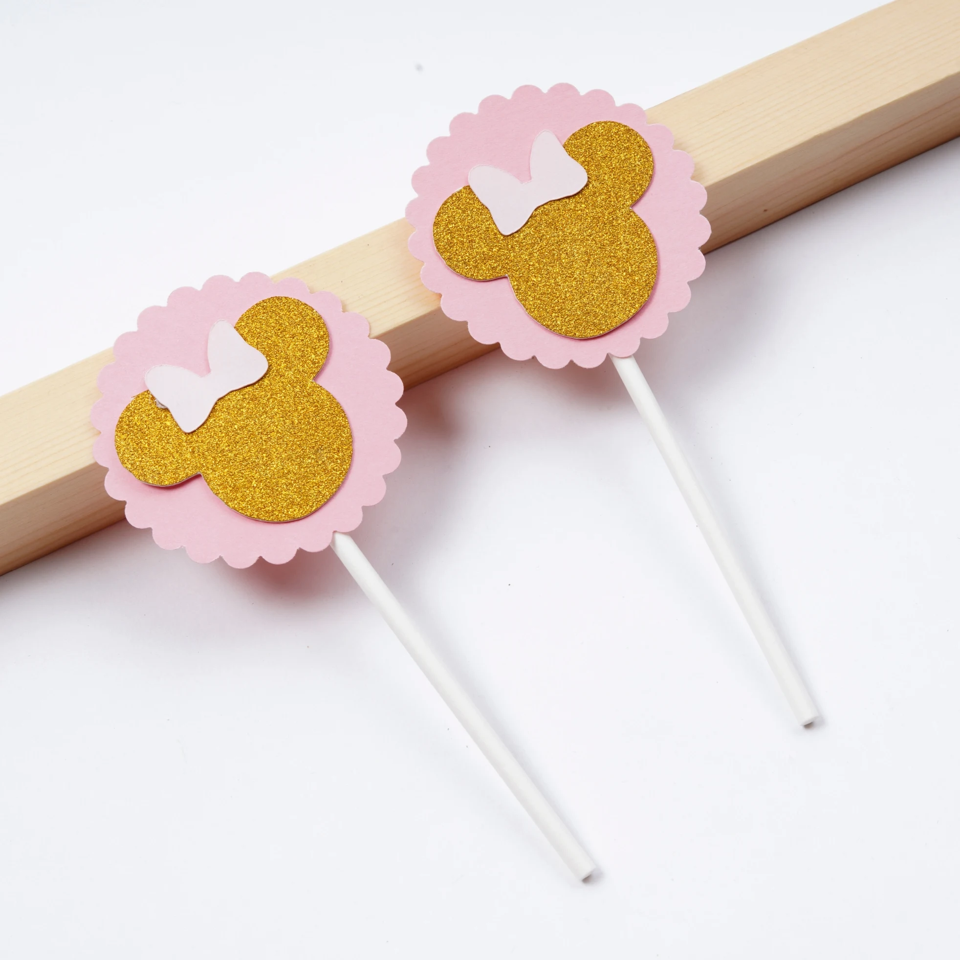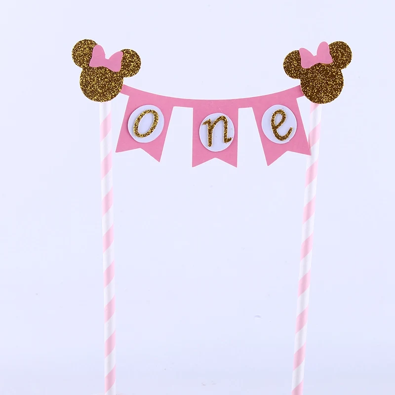 Золотой флаг Минни Маус для торта, розовый Топпер для торта и Топпер для кексов, накидка для торта на день рождения, детские украшения, украшение на годовщину