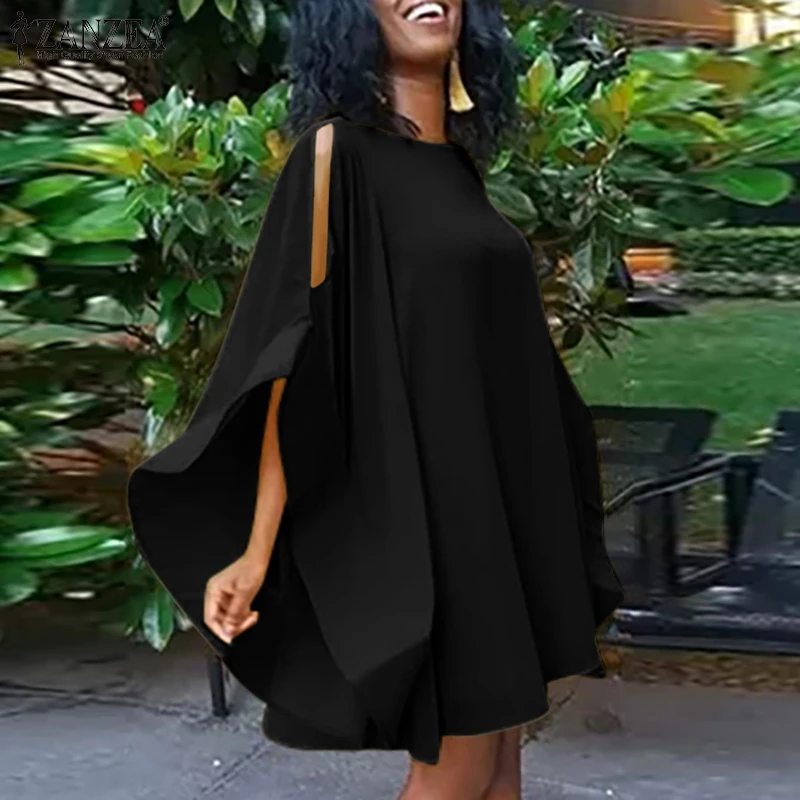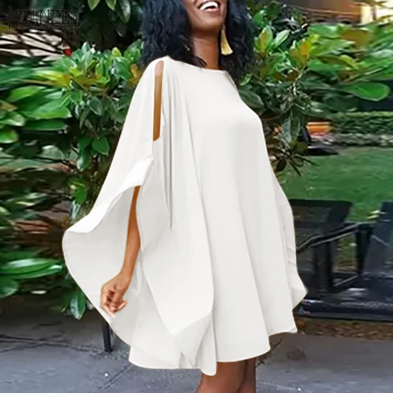 Летняя блузка с открытыми плечами, стильные женские топы с круглым вырезом и коротким рукавом, туника ZANZEA 2022, элегантная Однотонная рубашка, женские блузы, Халат