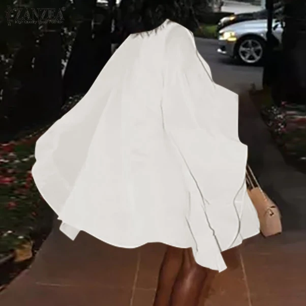 Осенние винтажные повседневные топы ZANZEA с длинным Расклешенным р...