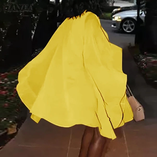 Элегантное женское асимметричное платье ZANZEA с длинным рукавом-фо...