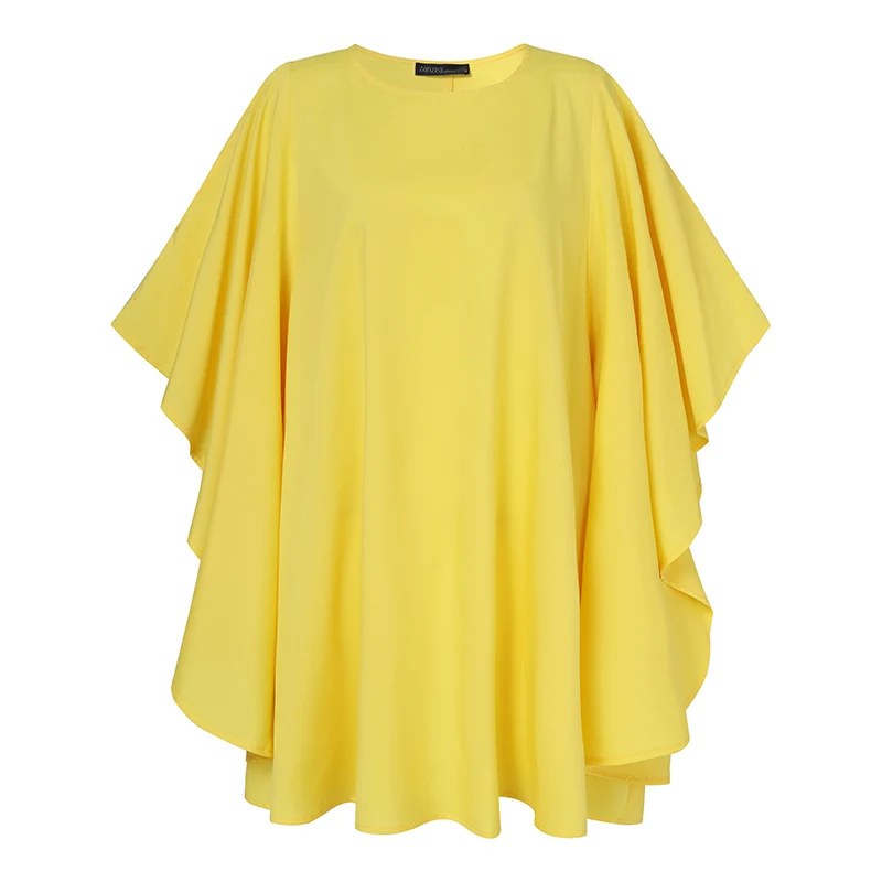 Модные осенние однотонные топы ZANZEA 2022, женские блузки с оборка...