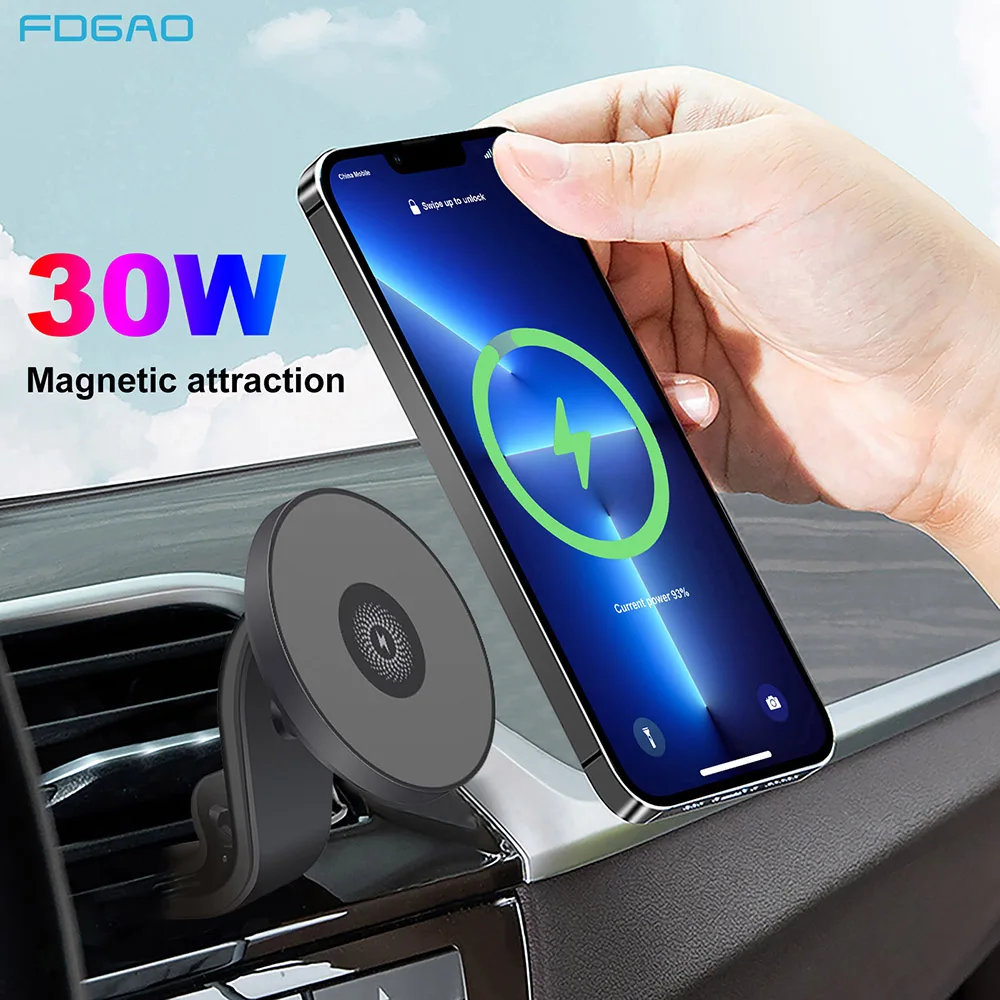 Магнитное автомобильное беспроводное зарядное устройство FDGAO, 30 Вт, быстрая зарядка, держатель для телефона, портативное беспроводное зарядное устройство для iPhone 13 12 pro max mini