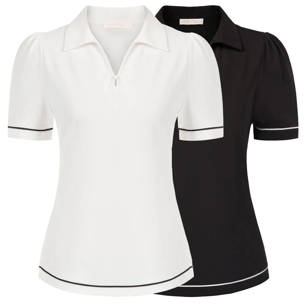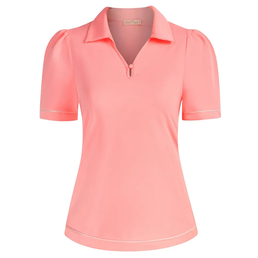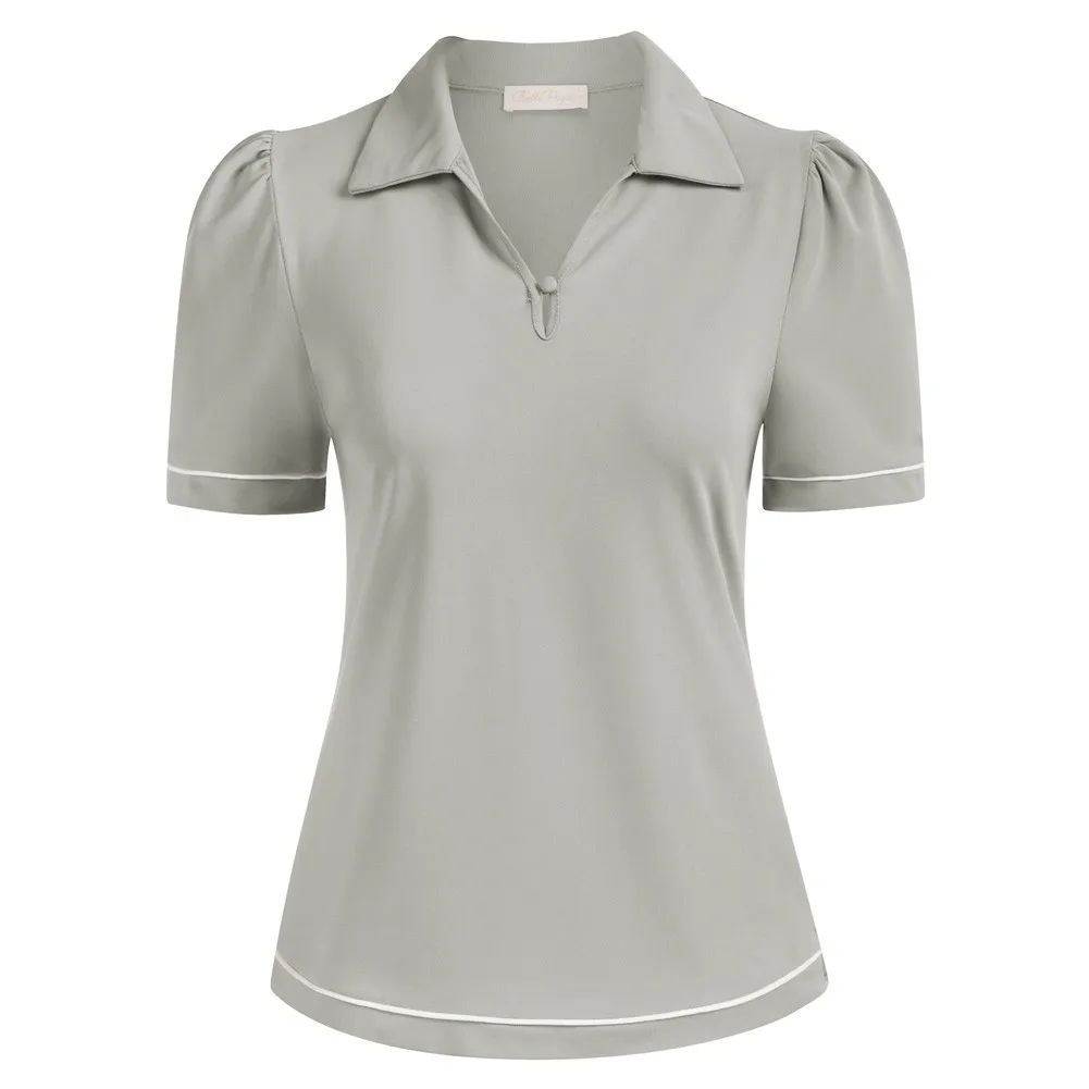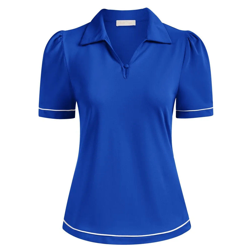 Женский топ с коротким рукавом, воротником-стойкой, эластичный, контрастного цвета, декоративный ошейник