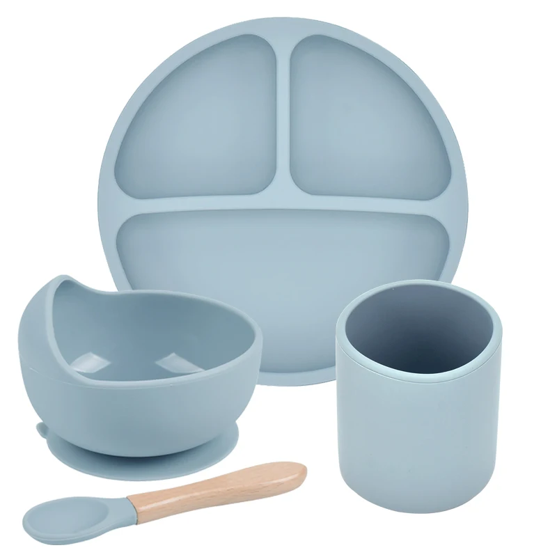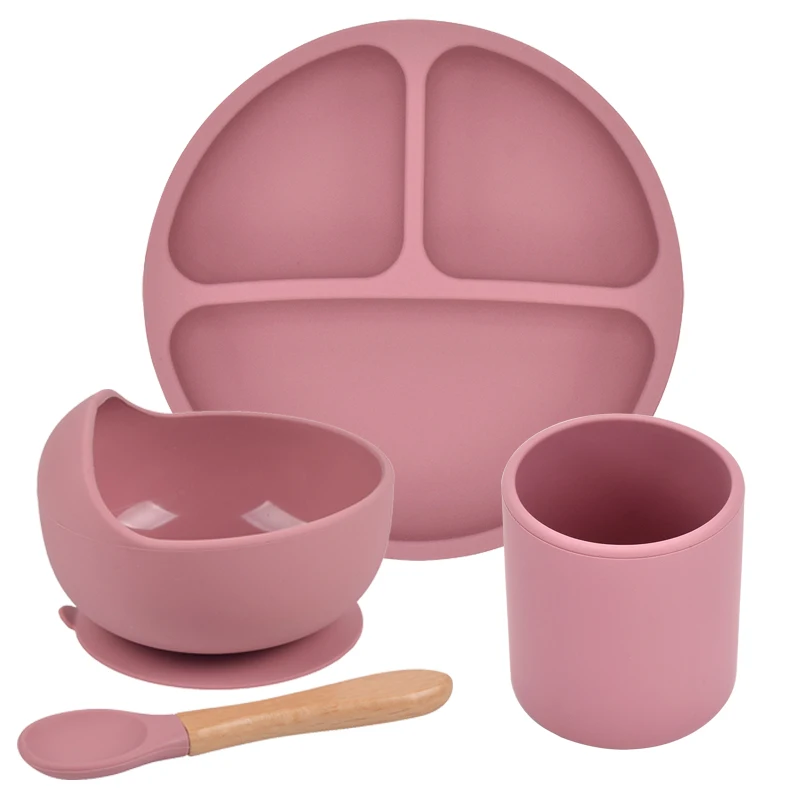 Набор силиконовых чашек для кормления, набор из 4 чашек, ложка без бисфенола А, водонепроницаемые, Нескользящие, однотонные столовые приборы для малышей