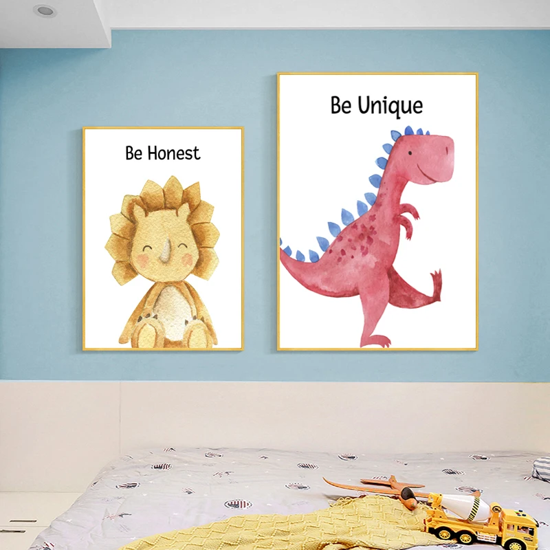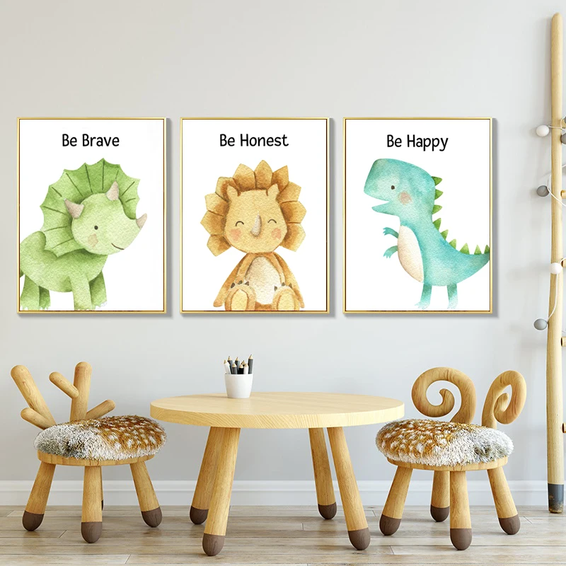 Скандинавский мультфильм искусство Декор Динозавр Детская комната Настенный декор качественная Картина на холсте домашний декор плакат