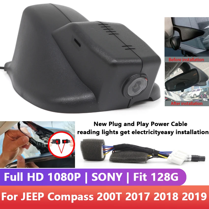 Видеорегистратор автомобильный full hd, Wi-Fi, ночное видение, для JEEP Compass 200T 2016 2017 2018 2019