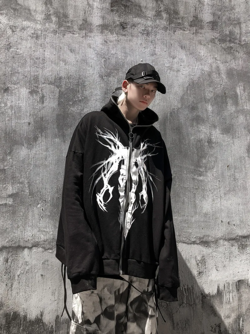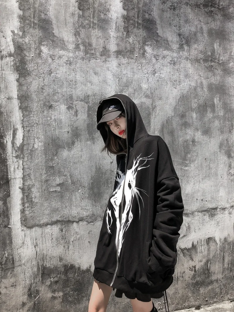 Женская толстовка на молнии, с графическим принтом, в готическом стиле
