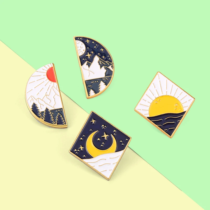 Эмалированные булавки с изображением Солнца и Луны Пейзажа для пар,...