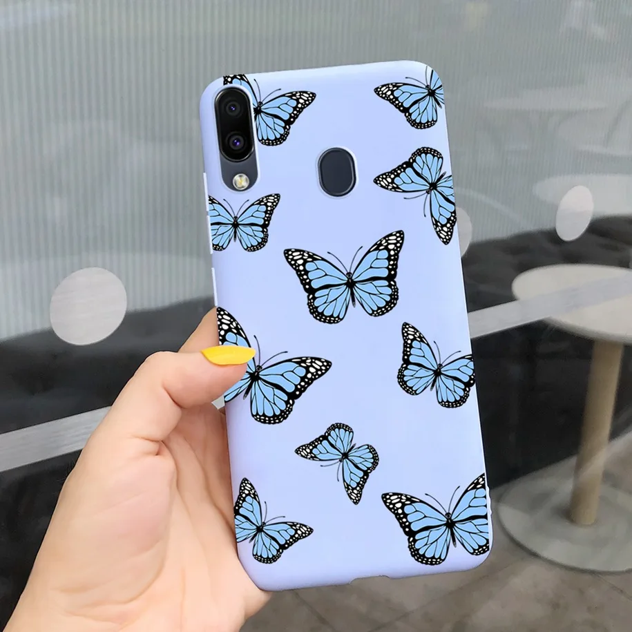 Чехол для Samsung M20 M205, чехол с синей бабочкой, тонкий чехол для телефона Samsung Galaxy M10 M20 M30, мягкий чехол, чехол M 10 20 30