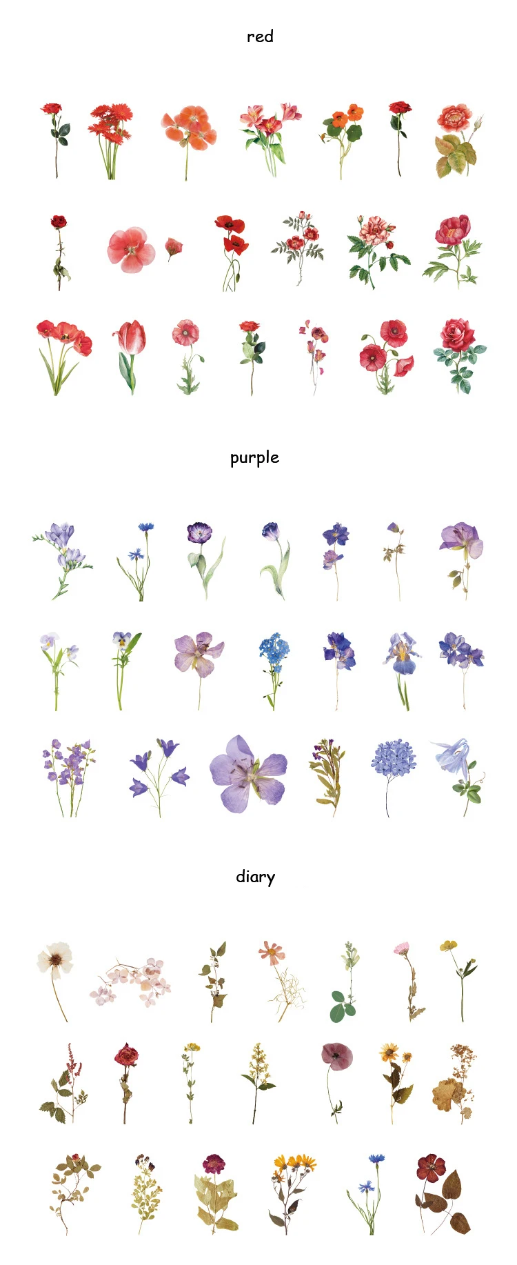 Наклейки акварельные винтажные Цветочные наклейки "растения", 40 шт...