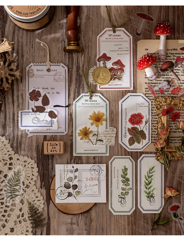 JIANWU 40 шт. наклейки для животных с природным цветком, винтажная ...