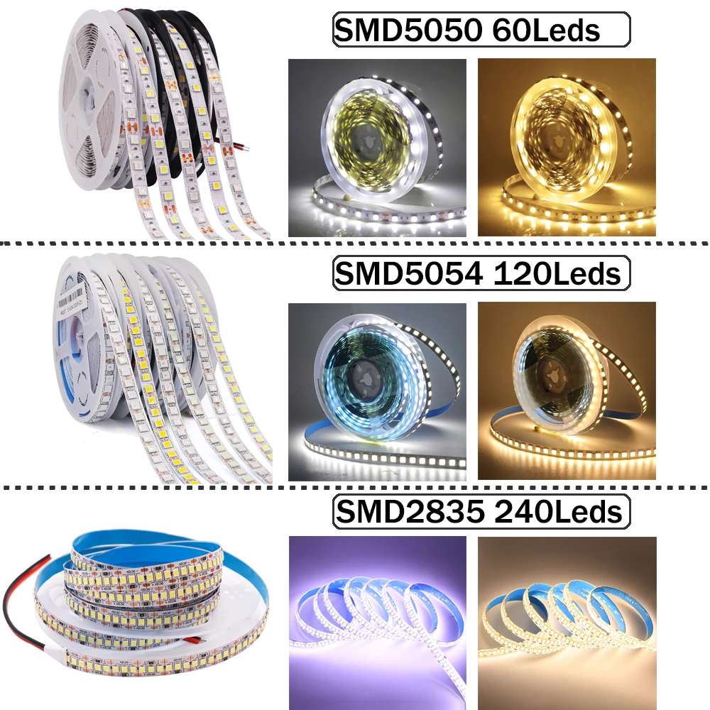 5 м RGB светодиодный ленточный светильник DC12V 2835 5050 5054 SMD гибкая светодиодная лента 60120240 светодиодов ленточный водонепроницаемый веревочный Светильник 3000K 4000K 6000K