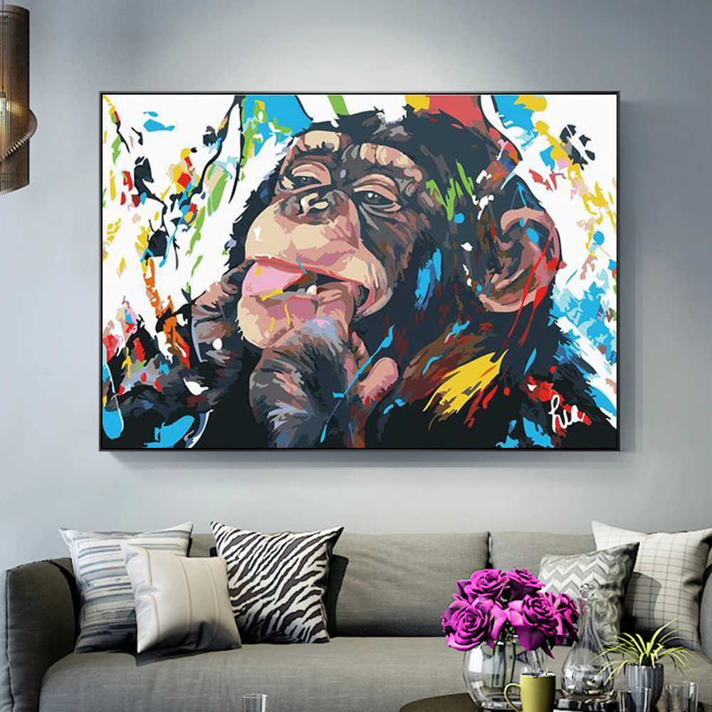 Граффити красочные животные Холст Живопись Искусство Милая обезьяна...