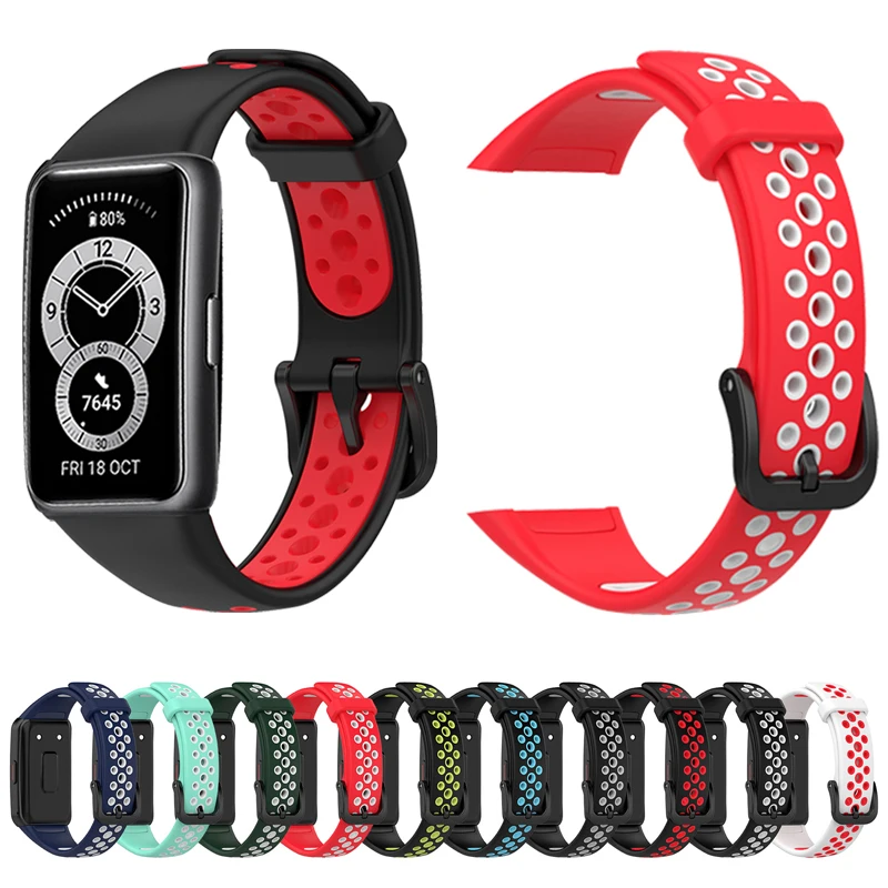 Силиконовый ремешок для часов Huawei Band 6, двухцветный дышащий ремешок для умных часов, сменный Браслет Для huawei band6 band 6, ремешок