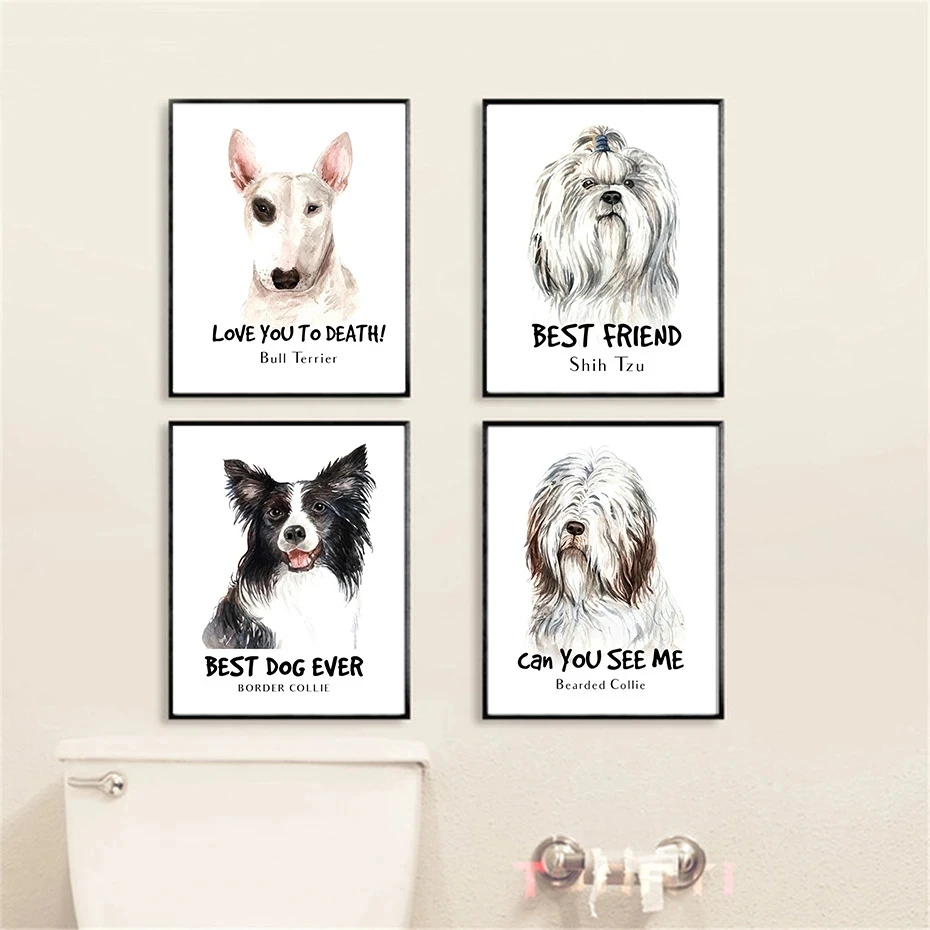 Современная Картина на холсте, Очаровательная собака, бультерьер, Бордер, колли, Ши, тцу, медведь, колли, диван для гостиной, декоративная картина