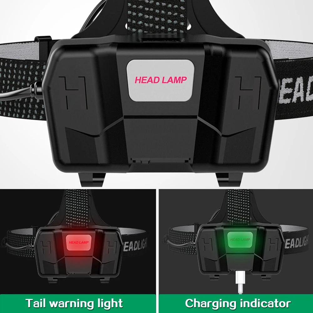 Мощный налобный фонарь с датчиком, головная лампа с USB-зарядкой, у...