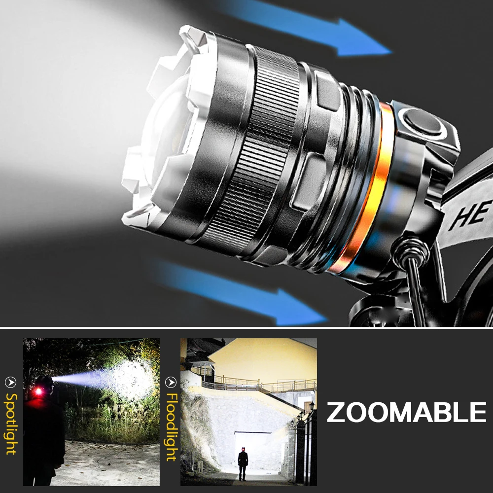 Налобный фонарь XHP, 50 светодиодный одов, водонепроницаемый, перез...