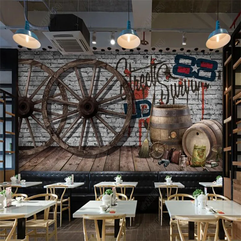 Европейский и американский стиль ретро дерево или кирпичная стена ковбойская пивная роспись обои 3D Ресторан Бар КТВ винные стены Декор фрески
