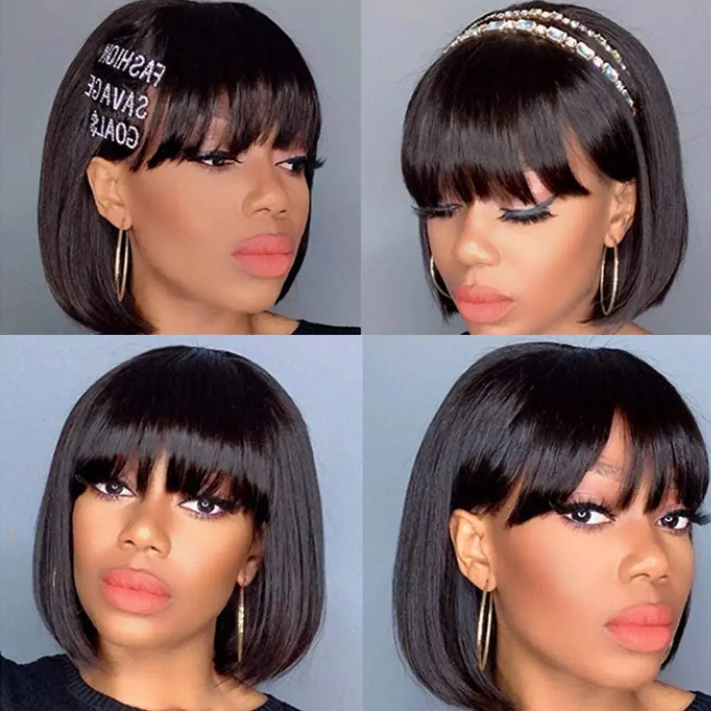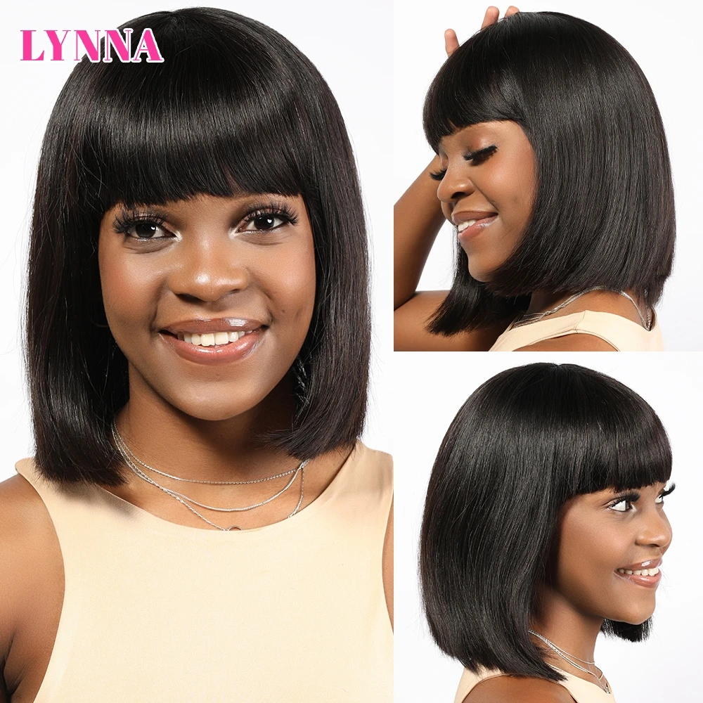 Парик черный Боб с бахромой, бразильские волосы, короткий Боб, парик для женщин, прямые человеческие волосы, парики с челкой, 10 дюймов, натуральный черный
