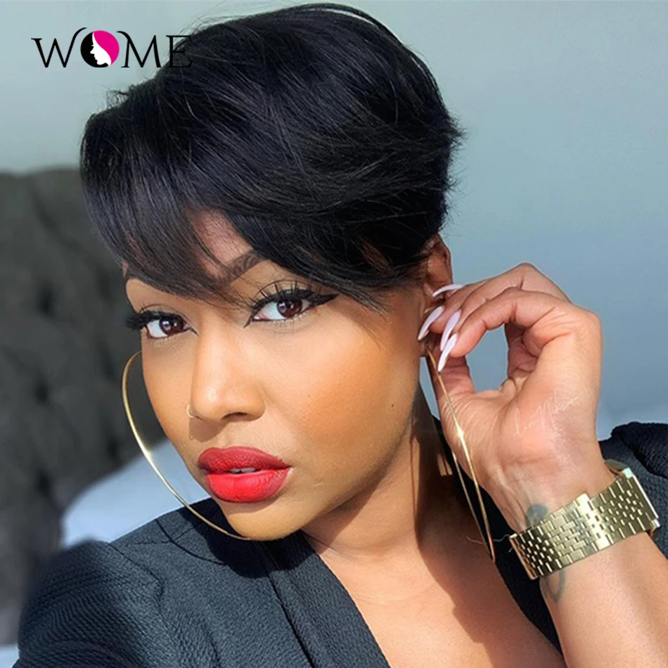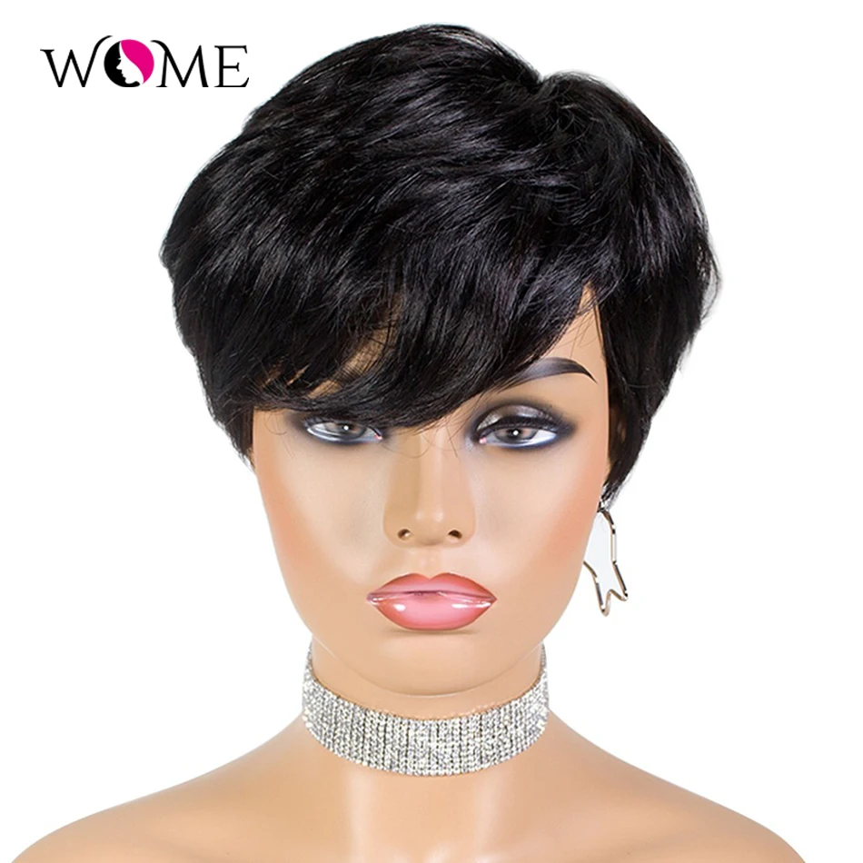 Парик WOME Pixie Cut, Короткие парики из натуральных волос на шнурк...