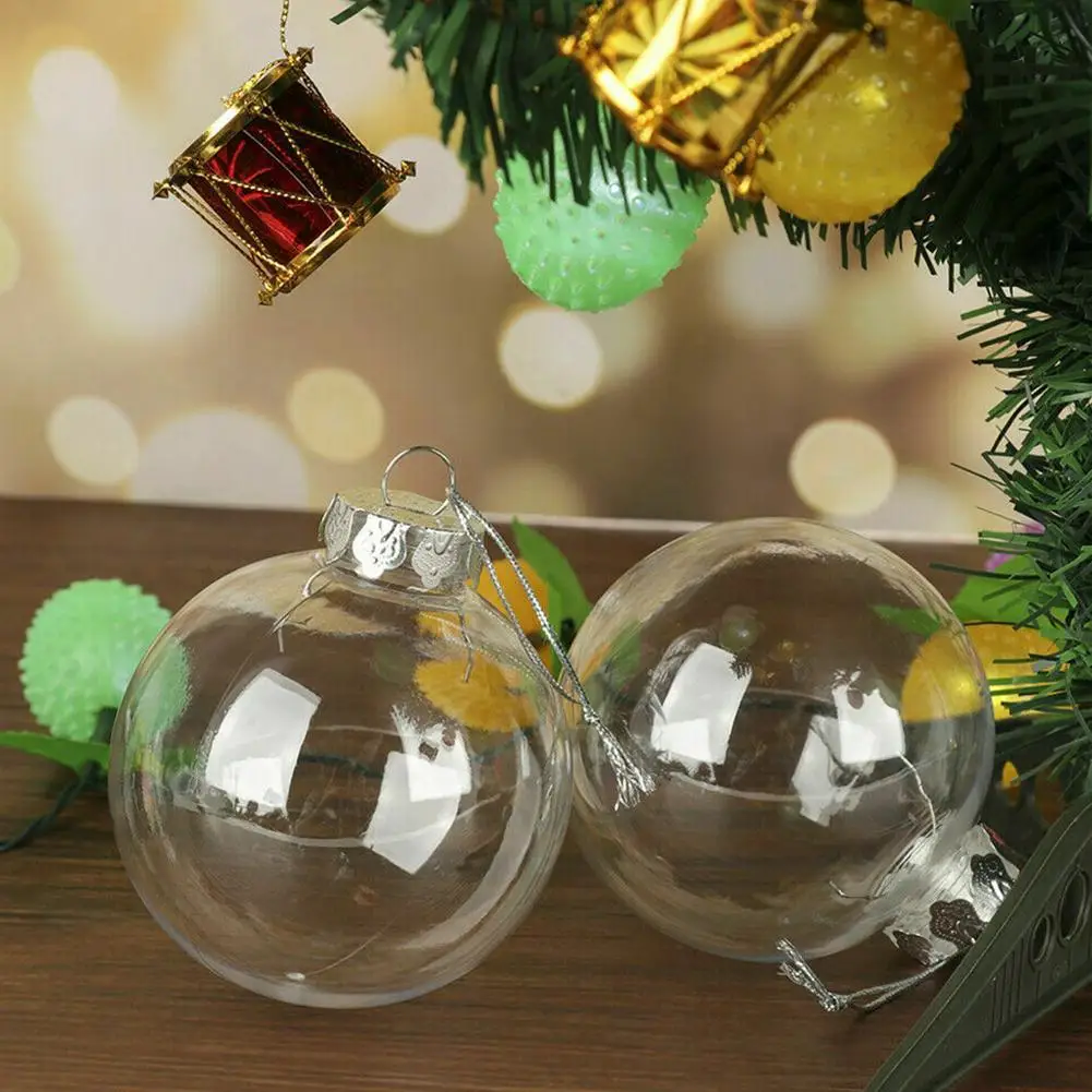 Заполняемые Рождественские Елочные шарики 6 см, пластиковые прозрачные праздничные вечерние ственские шарики, строительное украшение, подарок с крышкой