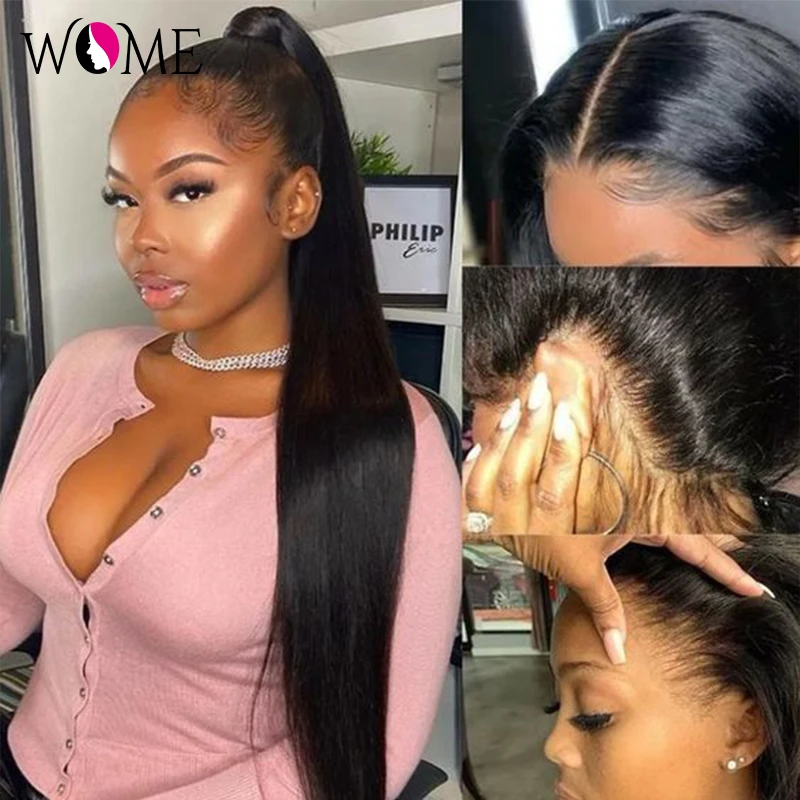 Wome 13X5x1 парики из натуральных волос, Hd T часть, прозрачный кружевной парик, предварительно выщипанные бразильские прямые волосы, парики Remy Hair