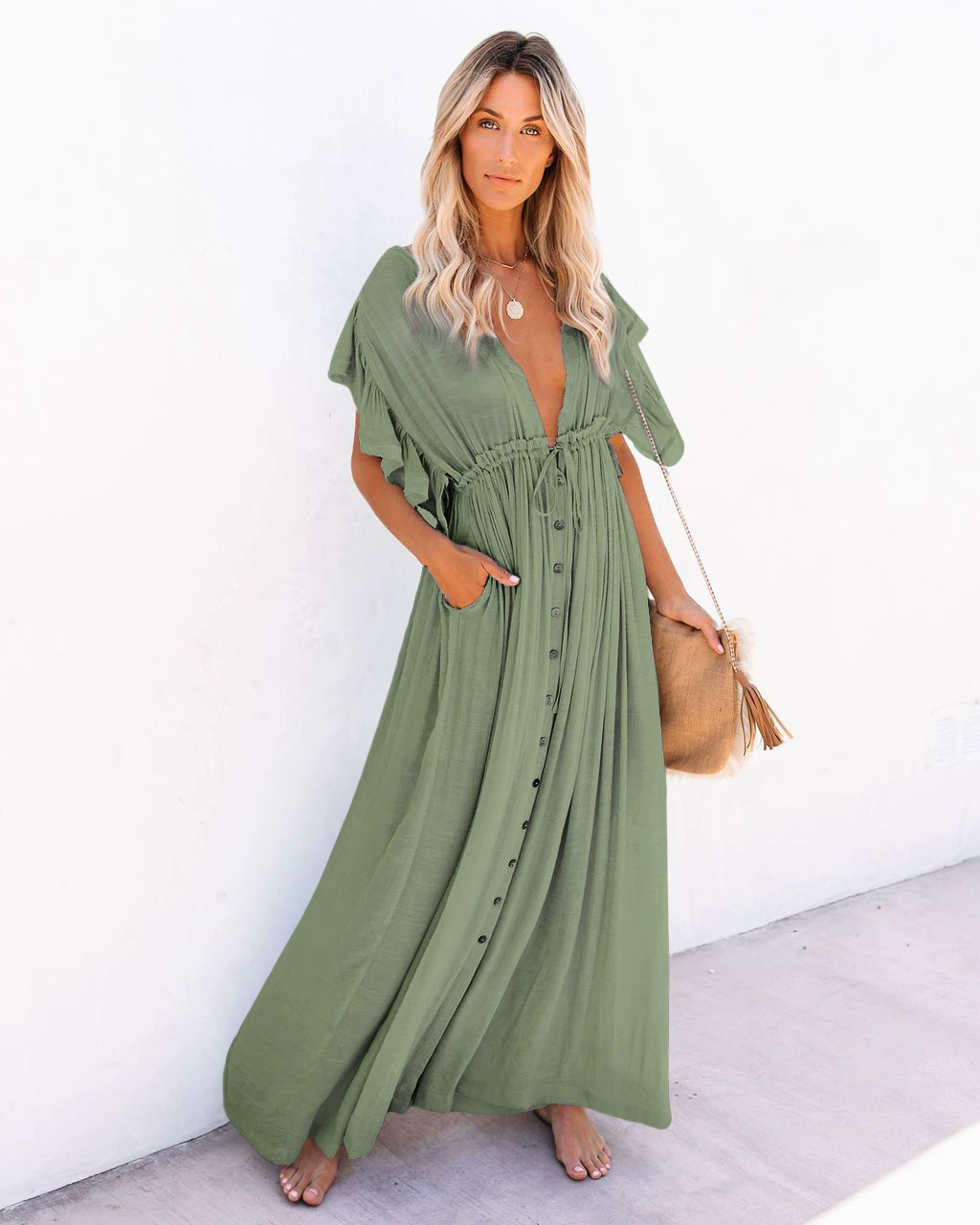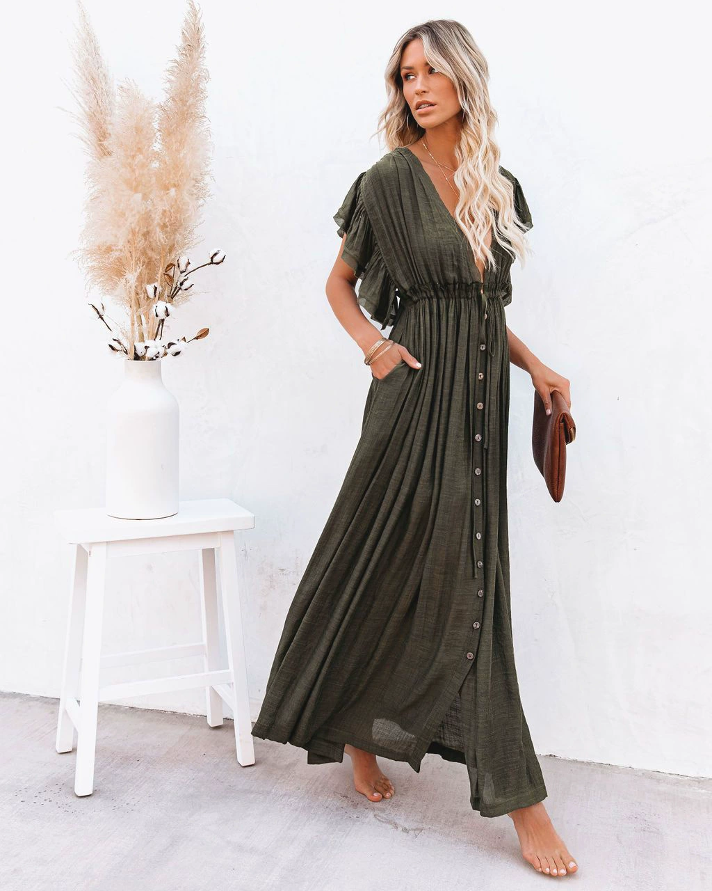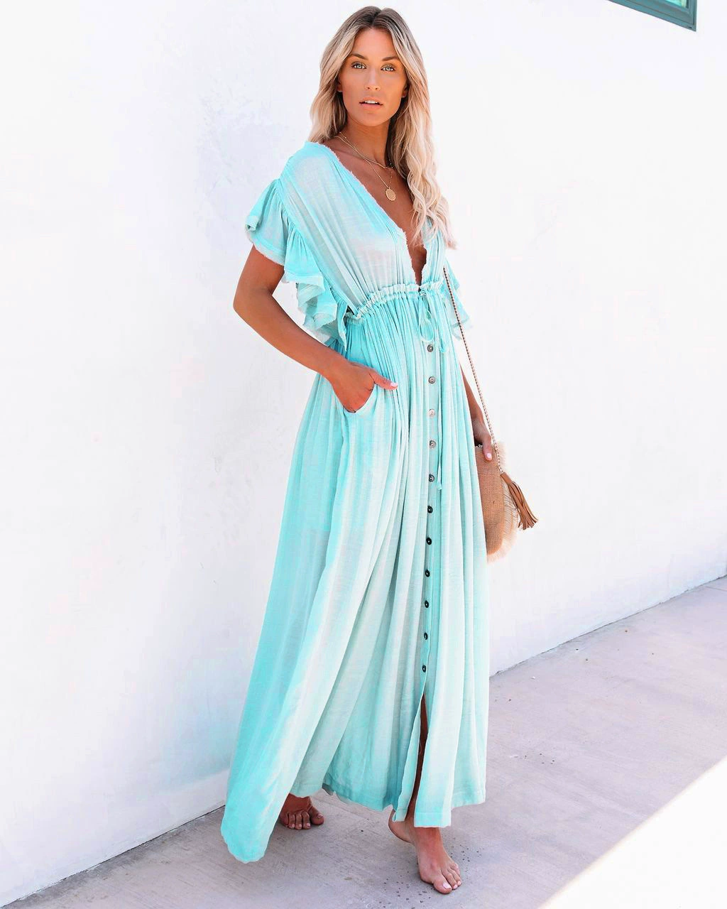 Женское пляжное платье на пуговицах, с глубоким V-образным вырезом ...