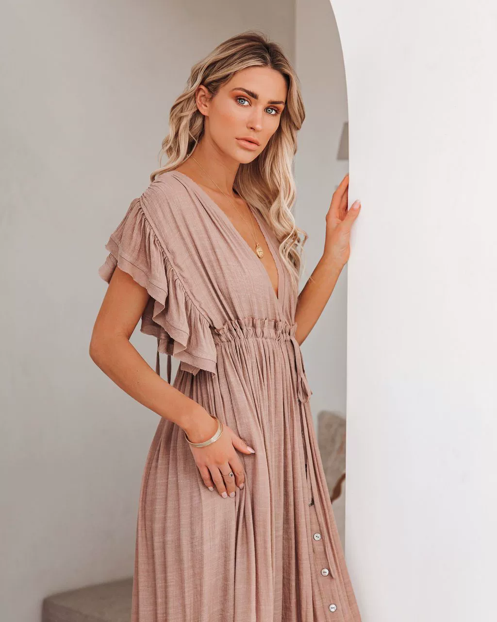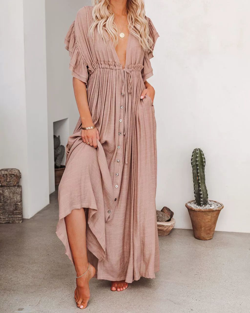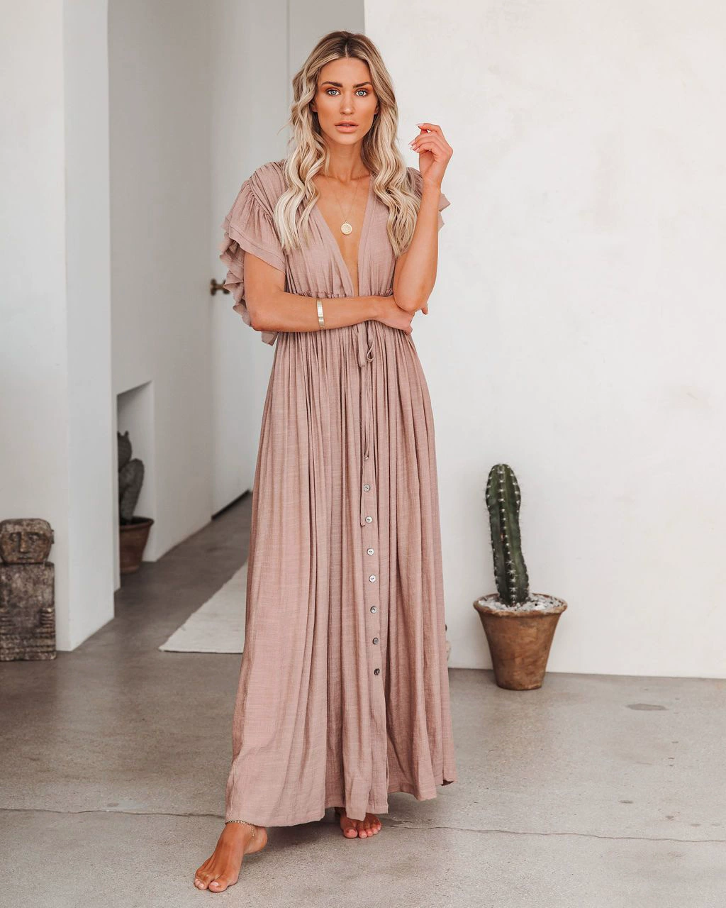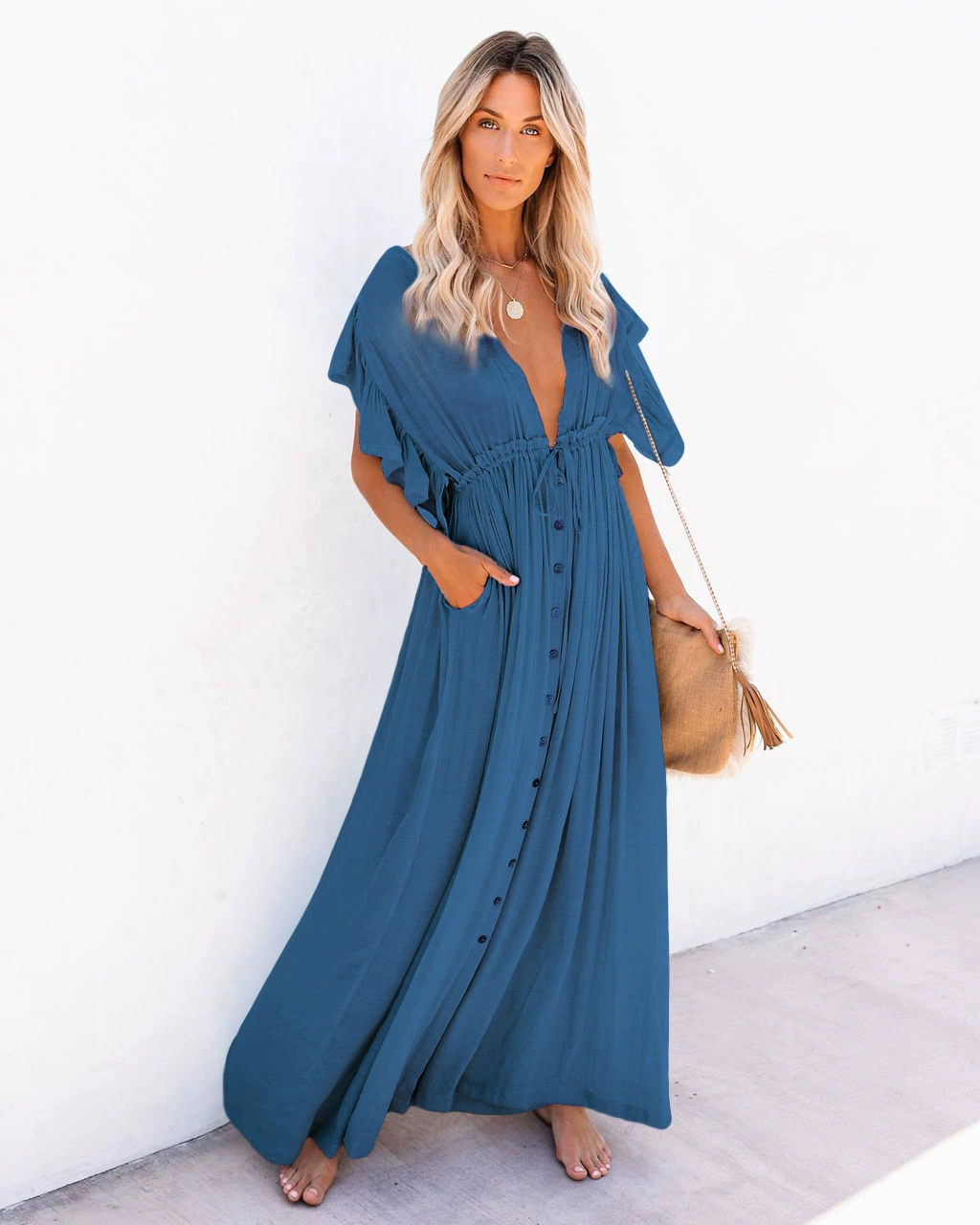 Женское пляжное платье на пуговицах, с глубоким V-образным вырезом ...
