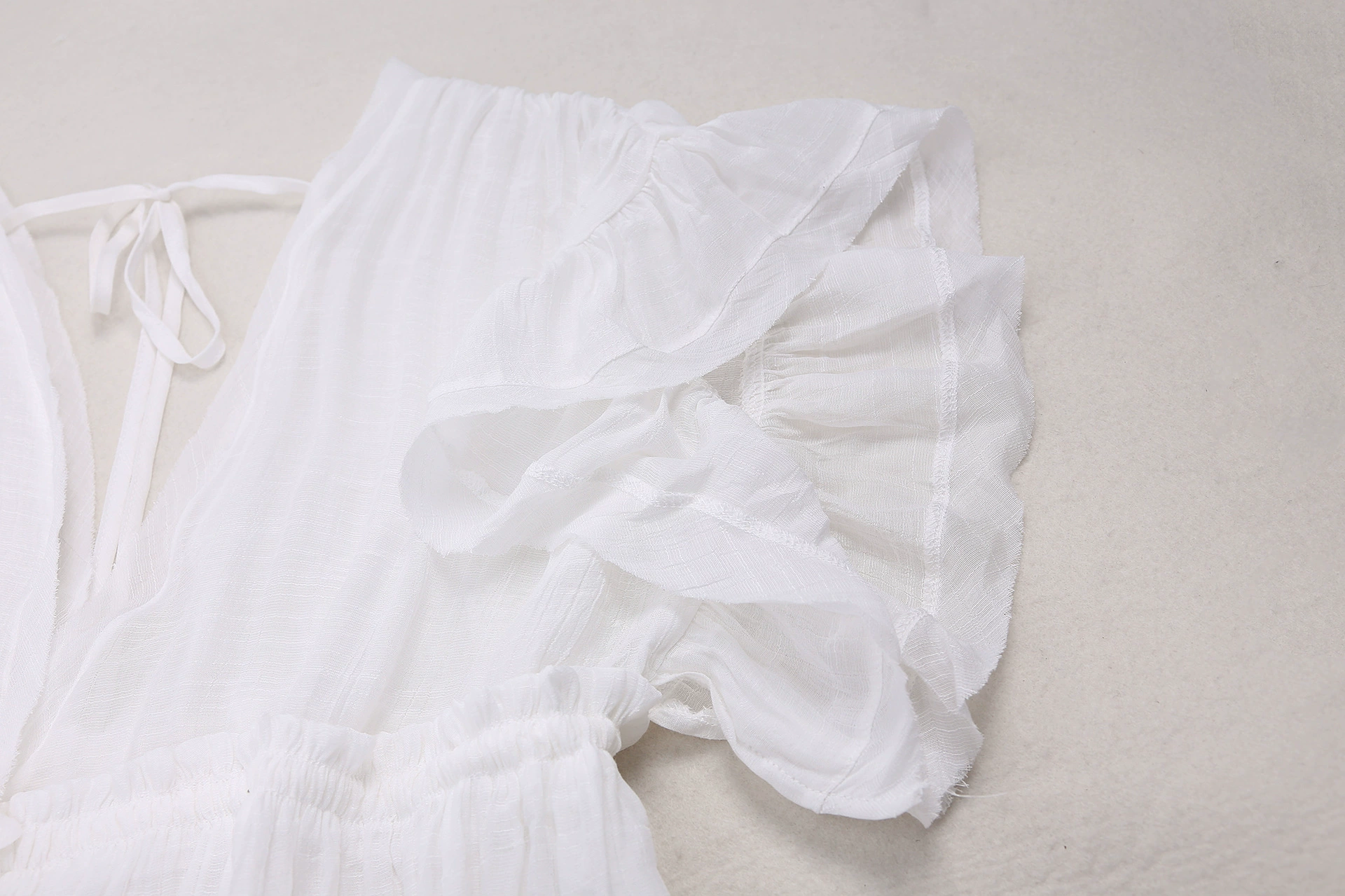 Платье женское пляжное с поясом, пикантная Белая Туника с глубоким ...