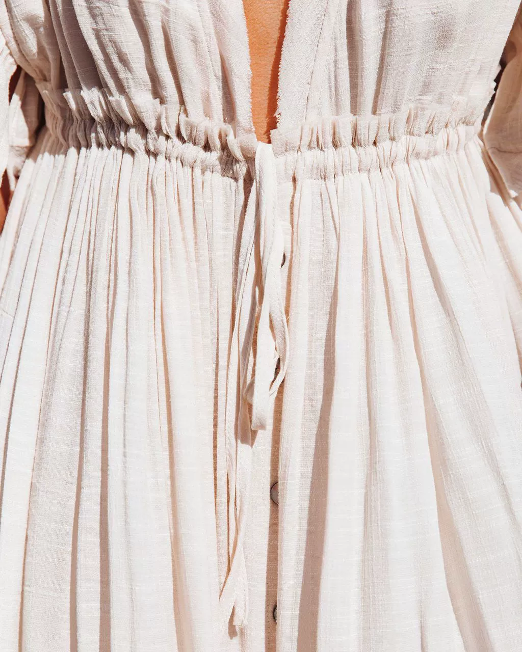 Женское пляжное платье на пуговицах, белое платье с глубоким V-обра...