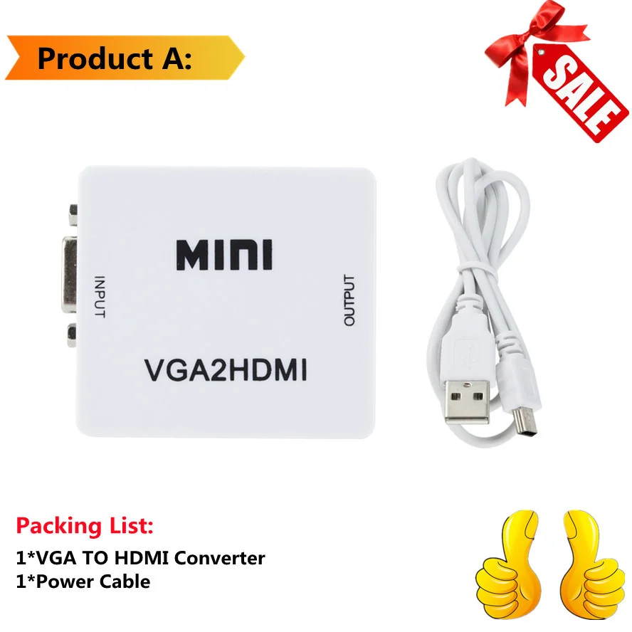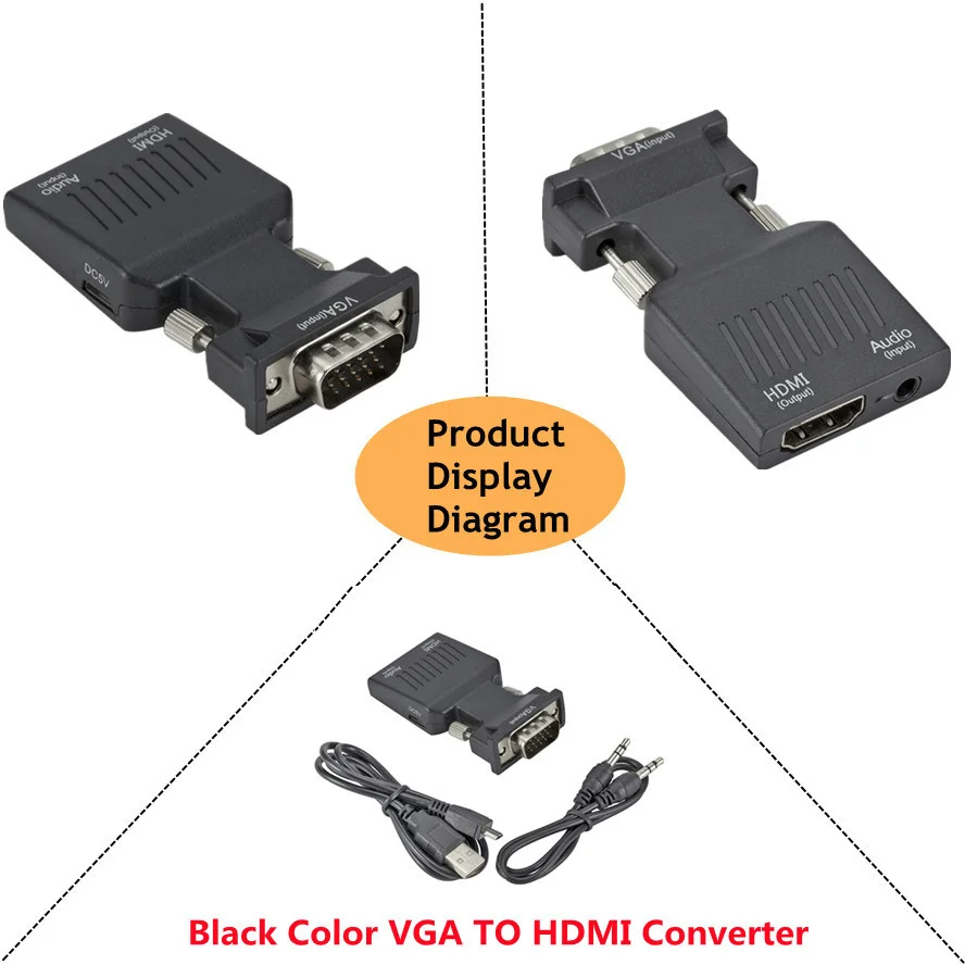Посылка включает:1 x VGA в HDMI адаптер конвертер1 х аудио кабель1 кабель питания Micro USB
