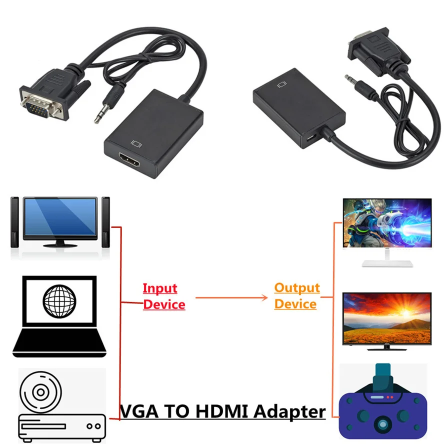 Конвертер VGA-HDMI-совместимый, портативный мини VGA2HDMI видео бокс, аудиоадаптер 1080P для ноутбука, ПК, HD ТВ проектора, ТВ