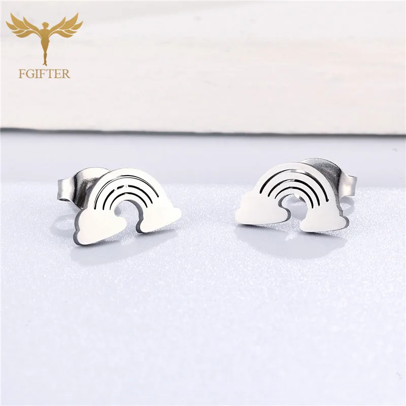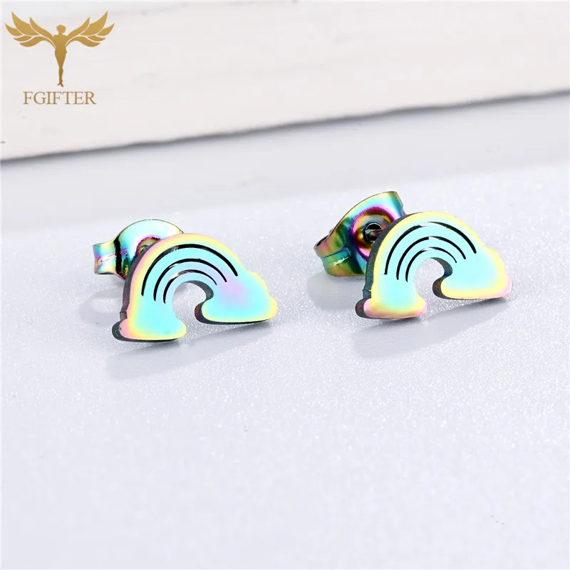 Корейские простые женские серьги-гвоздики, стальной цвет, радуга, женская бижутерия, лидер продаж, подарок на день рождения