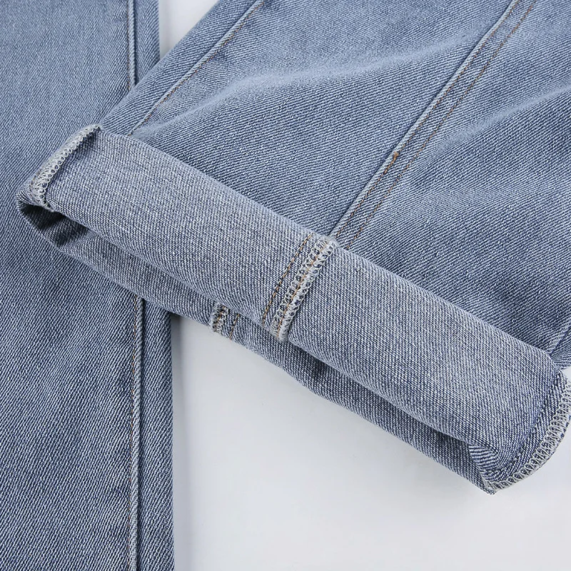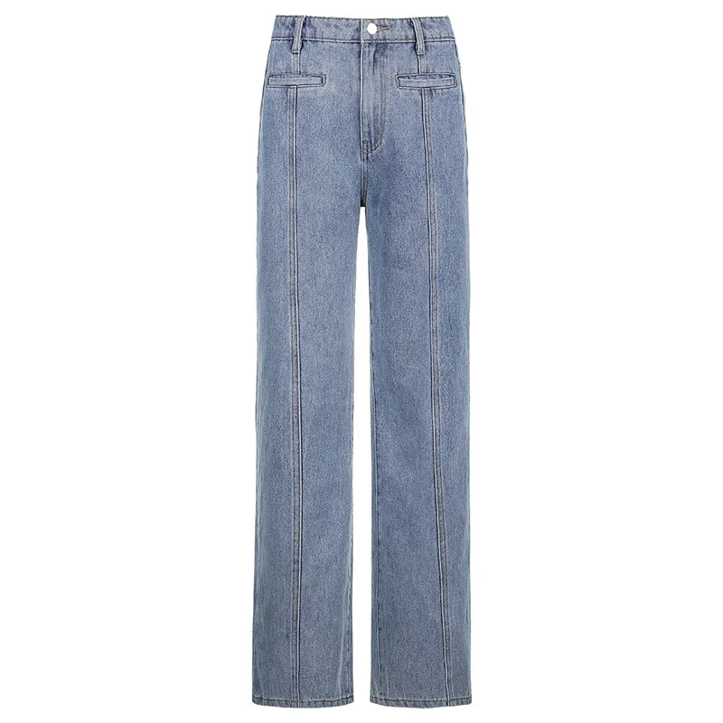Женские джинсы с завышенной талией, прямые расклешенные светло-голубые джинсы составного кроя, с пятью звездами, в уличном стиле, 2021