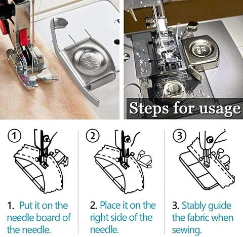 【Швы идеальные прямые кромки 】Идеальные ровные швы по прямым краям и изгибам. Он прост в использовании и станет отличным помощником при шитье прямой или круглой дорожки. Этот чрезвычайно мощный Магнитная направляющая для швов можно легко установить и отрегулировать в любом положении металлической горловины. Значительно повышает эффективность процесса пошива одежды.