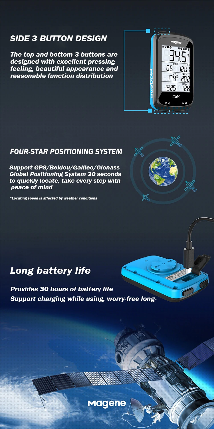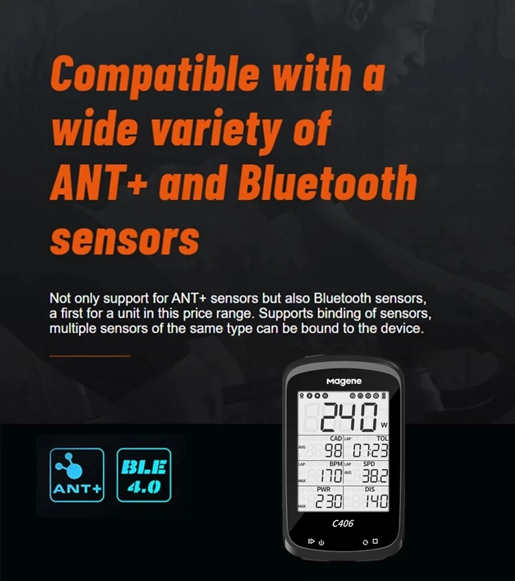 Велосипедный GPS-компьютер Magene C406, с датчиком скорости и частоты вращения педалей S3, датчиком сердечного ритма H64