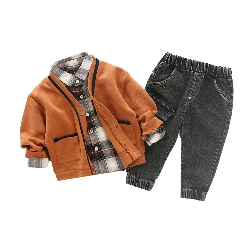 3 шт., Детские хлопковые комплекты одежды для мальчиков, рубашка с длинным рукавом + кардиган + брюки