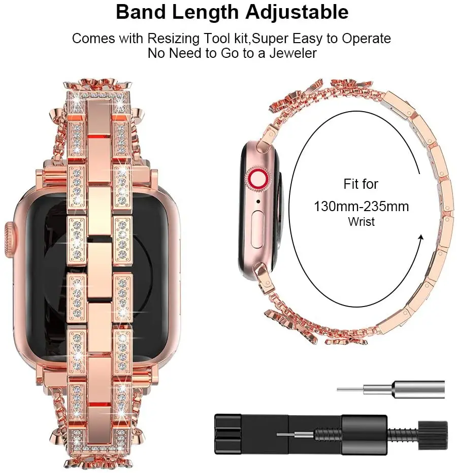 Браслет из розового металла с бриллиантами для Apple watch 7 6 5 4 SE 40 мм 44 мм 41 мм 45 мм, ремешок для смарт-часов iwatch 3 2 1 38 мм 42 мм