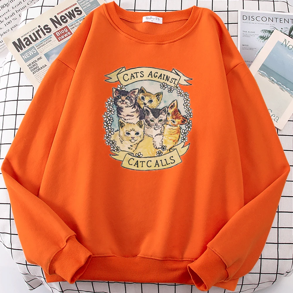 Толстовки с длинным рукавом и принтом «кошки против кошек», Высококачественная флисовая толстовка в стиле Харадзюку, модная мужская уличная одежда с капюшоном в стиле аниме