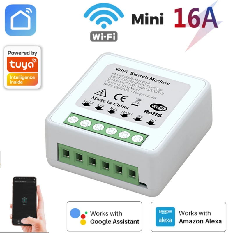 Умный мини-выключатель с поддержкой Wi-Fi, 16 А