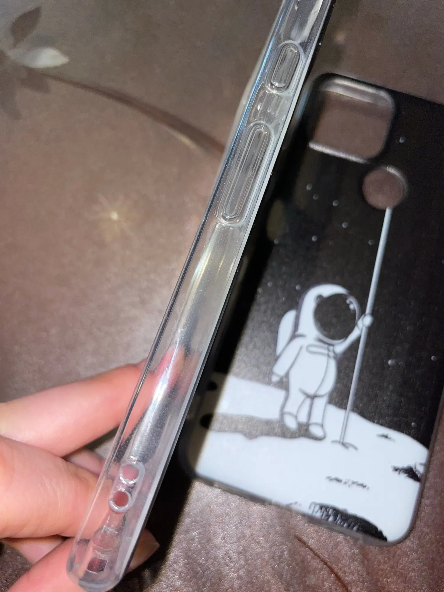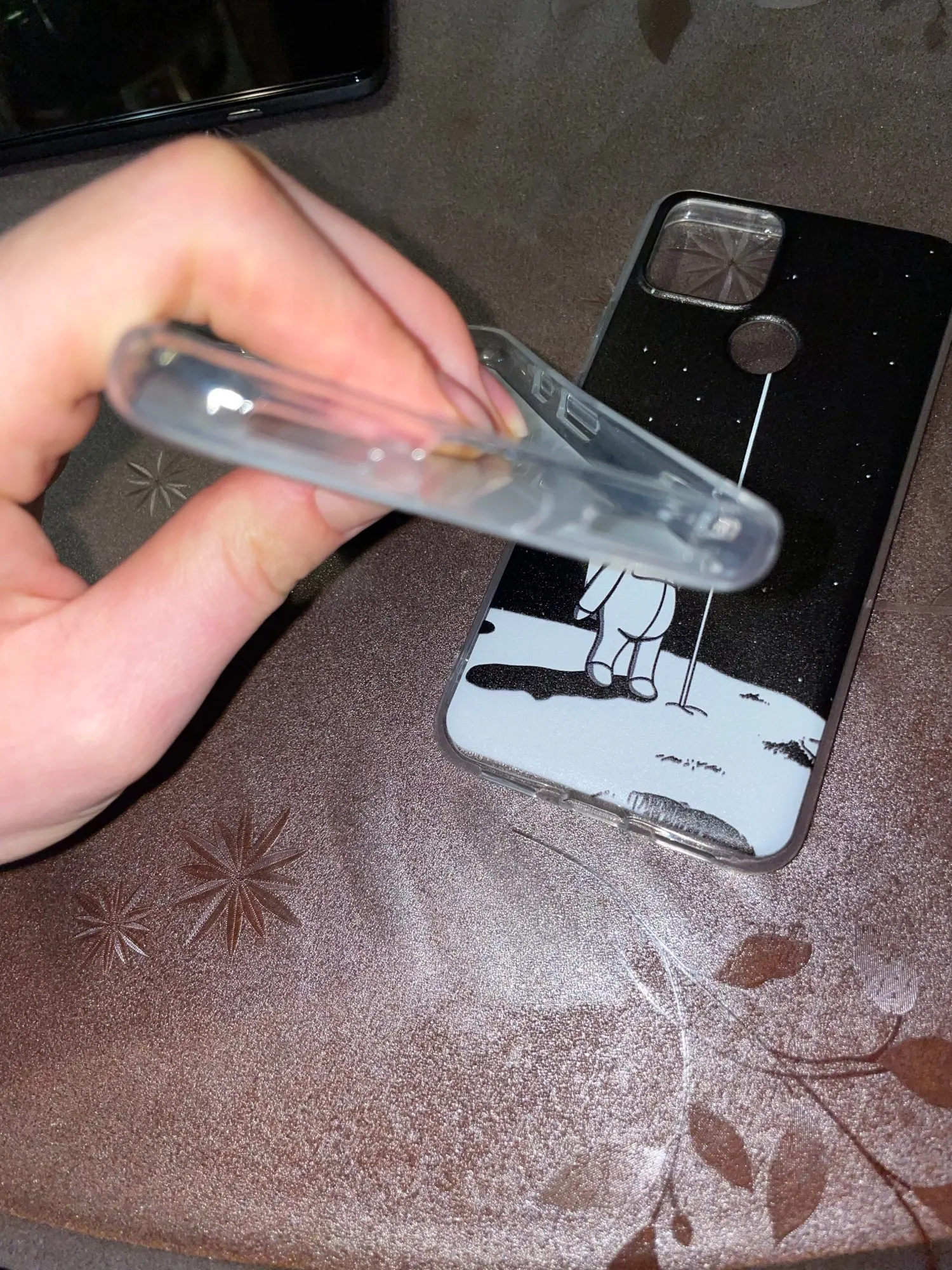 Милый чехол. Приехал за пару недель. Уточки не супер четко пропечатаны, но это не заметно особо. Единственное, я не учла что сбоку чехол будет прозрачный. Мой телефон мятного цвета, и в таком виде смотрится странно. Но думаю можно привыкнуть.