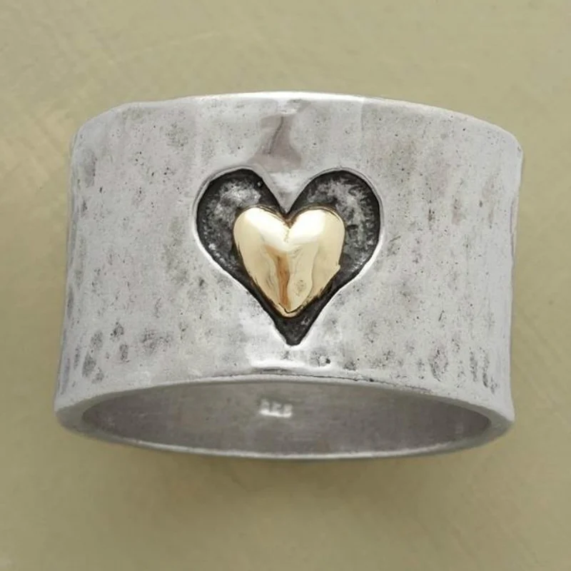 Винтажное женское двухцветное серебристое кольцо в форме сердца Жен...