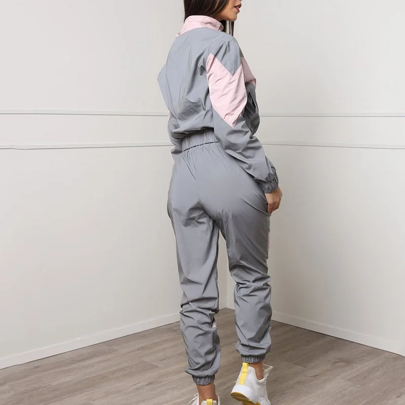 Женский спортивный костюм из двух предметов, модный светоотражающий укороченный топ и штаны, свободная куртка на молнии, повседневный костюм с жакетом и брюками, 2021