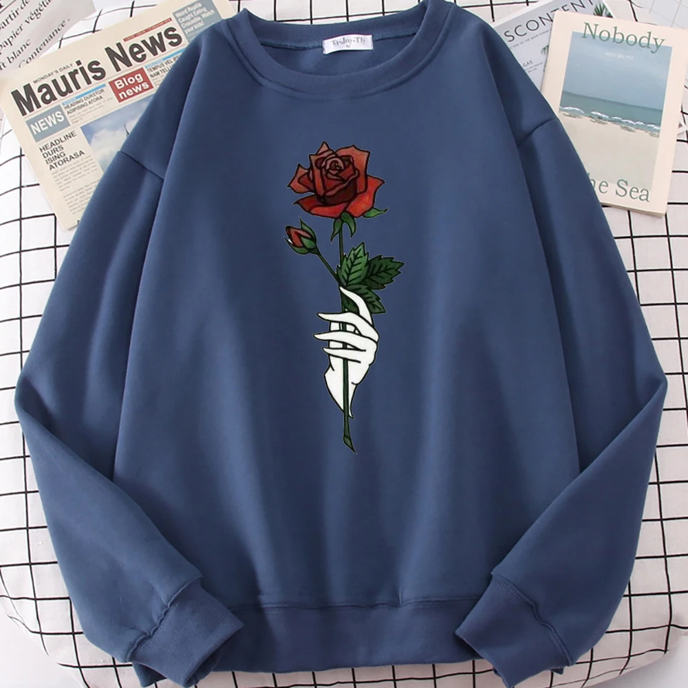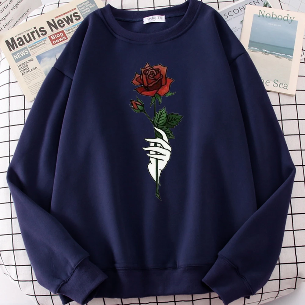 Толстовки с капюшоном с принтом в виде цветов розы, свободные мужские толстовки с круглым вырезом и карманами, мужская одежда с капюшоном, Kpop Harajuku, топ с капюшоном для мужчин