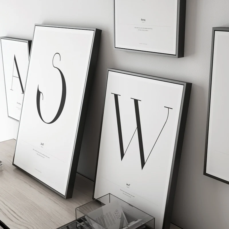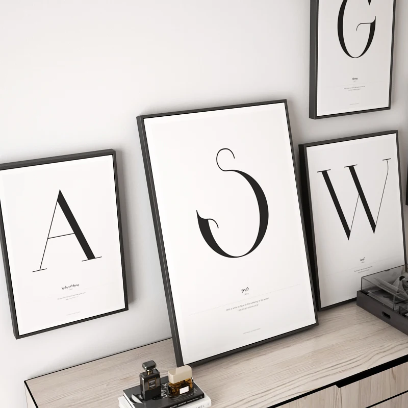 Скандинавская мода черно-белая печать на холсте, 26 букв, скандинавский плакат, художественная живопись, украшение для гостиной, картина для дома