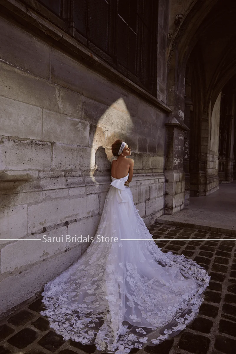Классическое Свадебное платье с открытыми плечами, без бретелек, ТРАПЕЦИЕВИДНОЕ, с 3D цветами, кружевное, со шлейфом, летние пляжные свадебные платья в стиле бохо