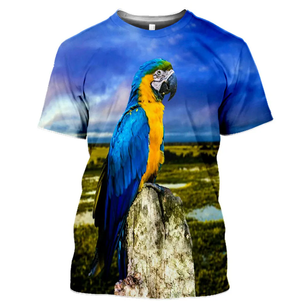Новые летние мужскиеженские футболки с 3D принтом, птицы, попугаи, ...