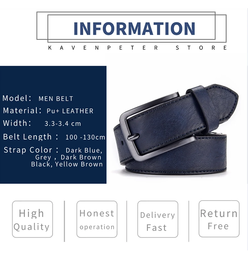 Подробная информация о ремне: Наименование ремня: модный мужской ремень Дизайн пряжки: Пряжка Цвет ремня: черный, желтый, коричневый, серый, Темно-коричневый, темно-синий Стиль: имиджевый, официальный, новинка, кэжуал, деловой Длина ремня: от 95 до 130 см (не обхват талии) Пожалуйста, выбирайте размер правильно Пояс можно регулировать в зависимости от размеров вашей талии.